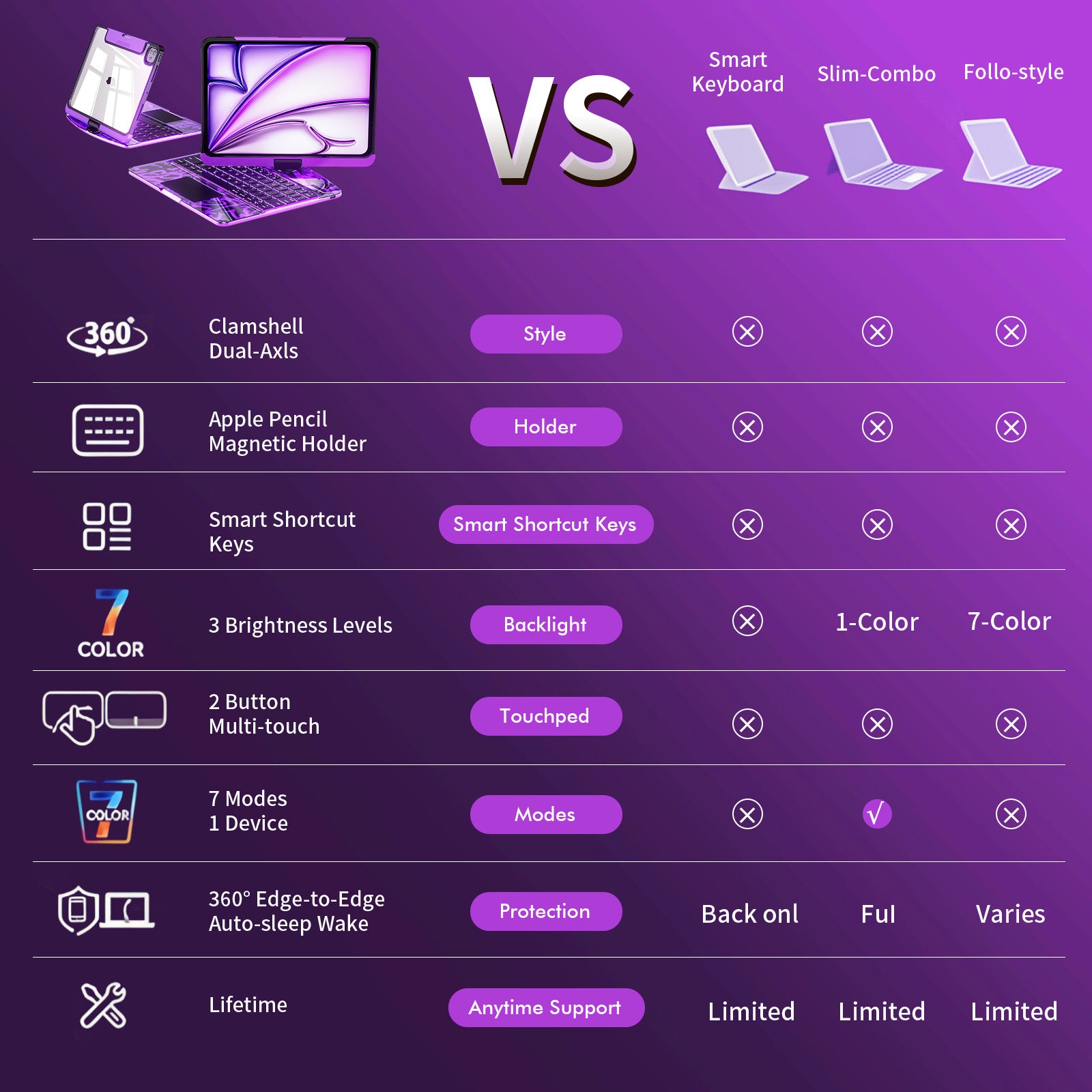 NAIDUN New Y2K Color Keyboard Compatible with Apple iPad Purple